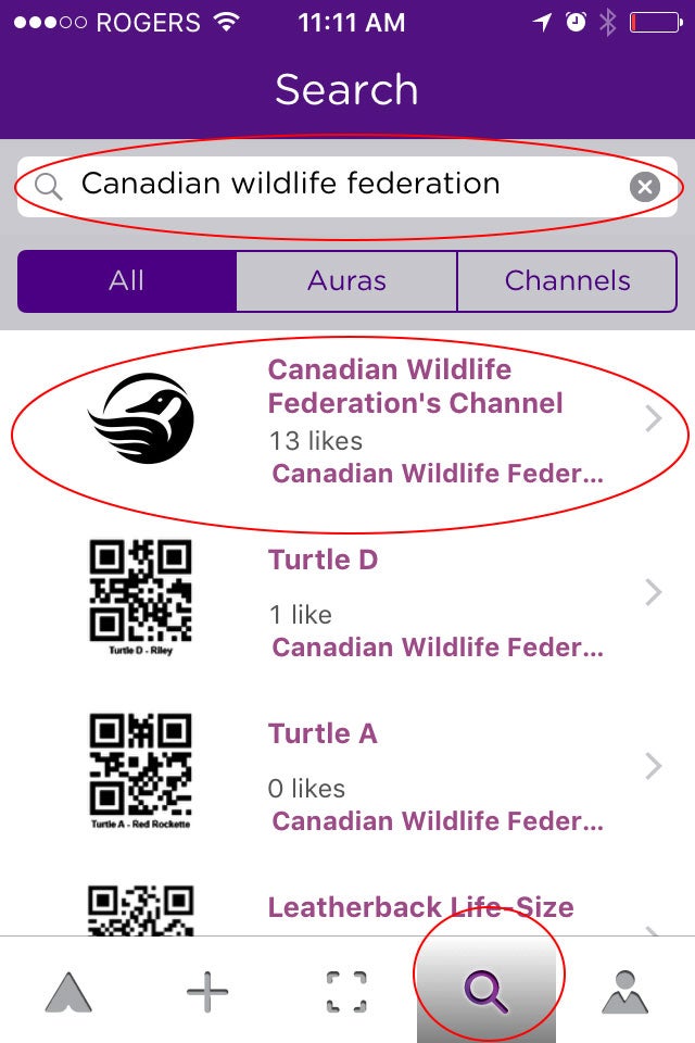 2. Open app on device, search for Canadian Wildlife Federation and click FOLLOW.