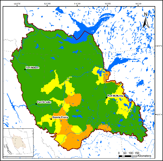 Canada’s western boreal forest is a region of national and international interest due to its immense economic and ecological values. The region’s oil, natural gas, timber, arable land, and minerals are all sources of great economic potential, but they also carry risks to wildlife and their habitat due to the cumulative effects of dispersed and often overlapping impacts of resource development. Oil and gas extraction in the area has drawn a great deal of national and international attention due to its large carbon footprint, particularly the oil sands; however, carbon emissions are only part of the story. The next 50 years of development of multiple, overlapping resources will also change the forests, wetlands, streams and rivers with consequences for wildlife and ecosystem services in the region an area three times the size of the United Kingdom.