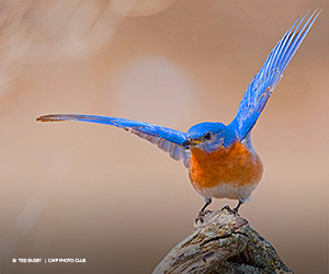 Canada has three species of bluebirds. They are in the Thrush family, the same family as the American Robin. Bluebirds are a little smaller than our robins, averaging about 7 inches in length and 13-14 inches in width. All bluebirds have blue heads, wings, backs and tails, which gives them their name. All species also have a black bill, legs and eyes. The differences between species come mainly from the colouring of the throat, breast and belly. The male Mountain Bluebird is mainly blue with a pale blue breast and white belly. The male Western Bluebird is a darker blue with orange-red on the upper and side portions of its chest and dull blue-white on the lower middle portion. The male Eastern Bluebird is similar to the Western Bluebird, but the orange also covers its throat and the front sides of its neck. Another distinction is that its white belly is brighter. The females and juveniles of these species have similar colouring to the adult males but a much paler version.