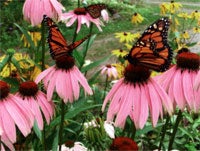 They also decided to go with the flow as far as gardening is concerned. Soon after moving there, they realized that the plants that were already there thrive better than those they grew in Toronto. They asked themselves, “What grows here?” and now, while they grow some non-native favourites, they mainly encourage natives such as bunchberry, blue bead lilies, winterberries, ferns and other beautiful and beneficial plants. These in turn keep the birds and butterflies coming to visit for shelter, nectar, fruit and seeds.