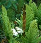 Of course, creating habitat was one thing; maintaining it is another. Helen and Judy's commitment to a healthy environment prompted them to garden the organic way — no pesticides, plenty of home-made compost, mulch, grass clippings left on the lawn (with the help of a mulching lawn mower), and no lawn watering (thanks, in part, to living in a boggy area). Pests are dealt with using a common-sense approach. The sawfly larvae that feed on the pine and tamarack trees are partly picked off by the birds that the trees attract and partly by spraying the trees with soap and water. Bindweed, an invasive plant that can strangle other plants, is hand-picked once noticed. Blackberries also keep bindweed under control, as Helen learned after she had pulled them out and a rise in bindweed ensued.