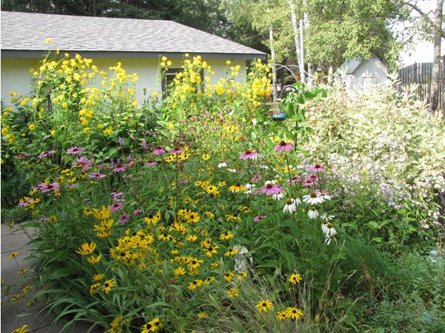 Another trick to effective habitat creation in a limited area is to consider your property as an extension of neighbouring habitat. I know of a tiny townhouse garden that regularly attracts the extraordinary pileated woodpecker. On its own, this garden would not be enough to support these colossal birds. But the garden was created to mirror some of the habitat elements of a neighbouring ravine. A single tree combined with a small cedar hedge and a carpet of ferns and other native plants allows the pileated woodpeckers to see it as an extension of their woodland habitat. So look to your surrounding areas. A nearby meadow could spill over into your garden with the addition of a variety of colourful perennials. A woodland could be extended with a potted shrub or small tree. You stand a better chance of attracting those wildlife species that are already in the area by reflecting aspects of the habitat they are currently using.