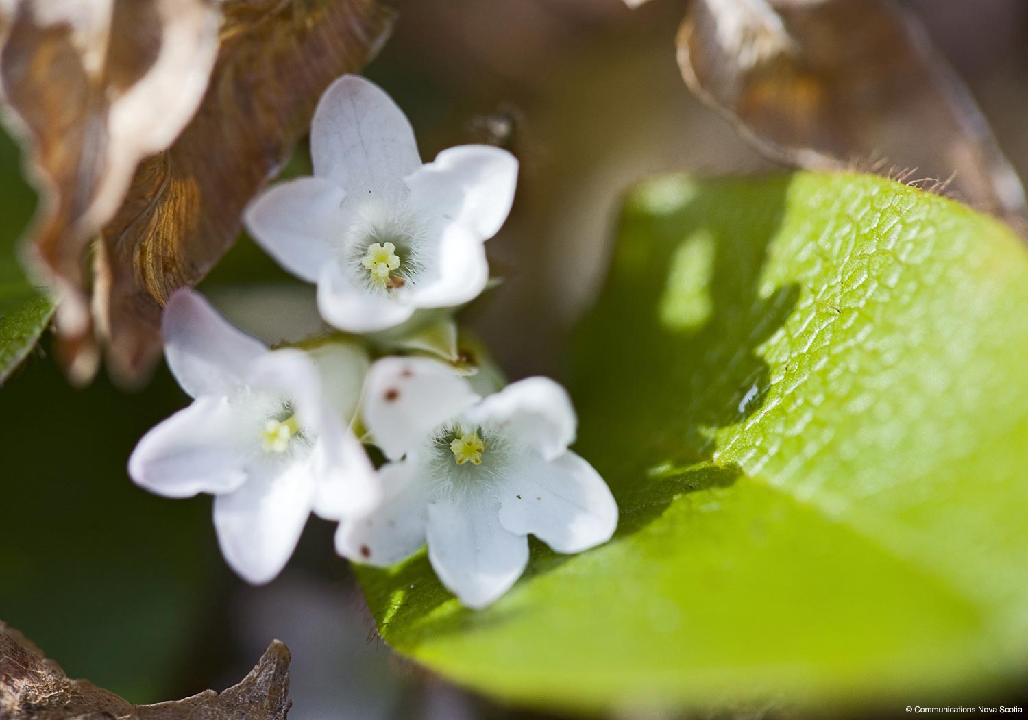 Nova Scotia officially adopted Trailing Arbutus, also called Mayflower or Ground Laurel, in 1901. This pretty spring plant is native from Manitoba through to all Maritime Provinces, typically growing in sandy or peaty forests and clearings. It is often found belong pine trees with other acid-loving plants such as Wintergreen, Starflower as well as blueberries and rhododendrons.
