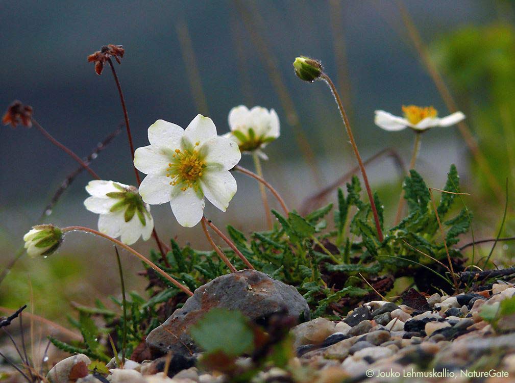 Mountain Avens is a dwarf shrub that slowly spreads to form an evergreen carpet along the ground which makes it a useful plant in stabilizing slopes. It’s narrow leathery leaves hug the ground and often keep their leaves until the following year, giving them the advantage of making food once the snow melts. Fuzzy flower stalks rise above soon after the snow has melted, each bearing a single creamy white flower with eight petals around a yellow center of stamens. It blooms from June to August. Seeds have a long feathery element that helps to catch the wind and disperse seeds.