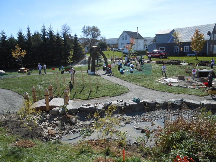 I arrived in the wee hours of the morning of September 21 in Edmundston, New Brunswick, to a mountain of gravel, soil, grass and rocks. It was time to build the Bienenstock Natural Playground. But goodness, when I saw the mound, the nerves swept over me. There was no way we were going to completely finish this playground by the end of the day. We needed a miracle.