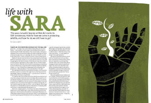 The Species At Risk Act (SARA) was passed in 2002 by the federal government as a means to prevent wildlife species from becoming extinct and to secure the necessary actions for their recovery. To develop a sound strategy for recovery, it is important for biology and law to be consistent as this can improve the conservation of the species at risk (SAR).