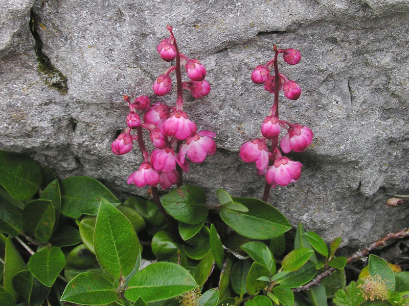 Most of the limestone barrens are a combination of various-sized limestone gravel, in essence a natural limestone scree. The diversity of plants is quite amazing. The crevice dwellers noted above are at home here. Other choice species include Saxifraga aizoides, S. paniculata var. labradorica, S. oppositifolia, S. caespitosa, Armeria maritima var. labradorica, Campanula rotundifolia, Primula laurentiana, P. mistassinica, P. egaliksensis, Gentianella nesophila, Solidago multiradiata, S. hispida, Packera pauciflora, Sagina nodosa, Cerastium alpinum ssp. lanatum, Lychnis alpina, Minuartia rubella, Tanacetum huronense var. terrae-novae, several Antennaria species...and the list goes on! These limestone gravels are home to several Arctic willows such as Salix reticulata, S. glauca, S. arctophylla, S. arctica, S. weigandii, S. cordata, S. vestita and dwarf forms of the silvery-foliaged S. candida. Other woodies in the region are Potentilla fruticosa var. tenuifolia, Shepherdia canadensis var. prostrata, Juniperus communis var. saxatilis, Dryas integrifolia, Betula pumila and Sibbaldiopsis tridentata. While rhododendrons are generally associated with acidic soils, the delicate R. lapponicum is perfectly at home here. In certain areas grow drifts of the exquisite dwarf yellow lady’s-slipper, Cypripedium parviflorum var. planipetalum, but other orchids, including Pseudorchis albida, Amerorchis rotundifolia, Platanthera hookeri, P. huronense, P. aquilonis, P. obtusata var. collectanea and Coeloglossum viride, abound here too.