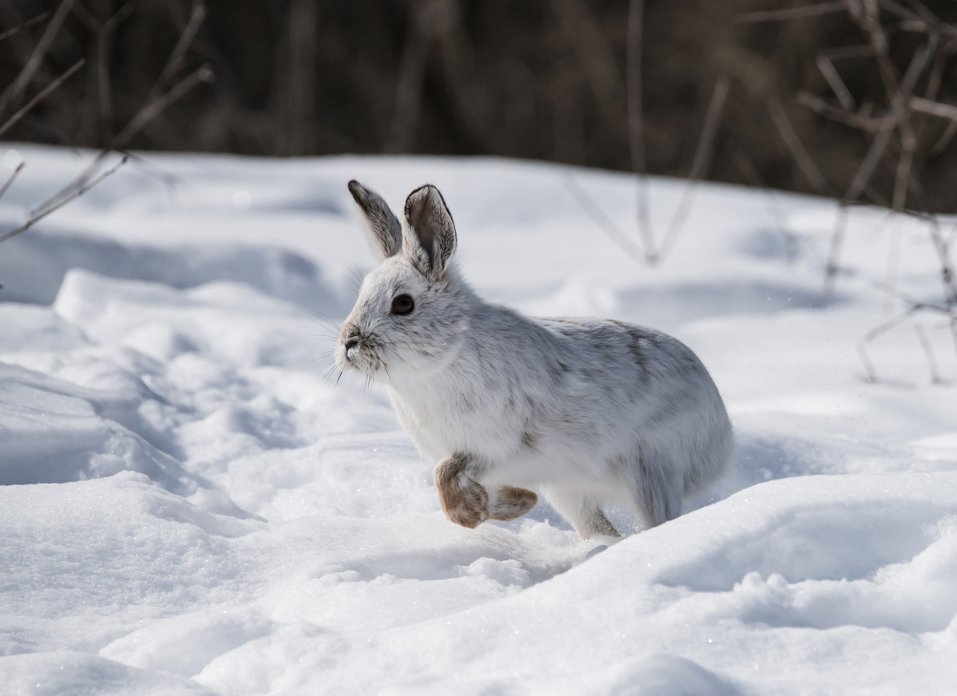 The colour of a snowshoe hare's fur changes with the seasons, from grey-brown in the summer to white in winter, the Canadian Wildlife Federation said. Rabbits fight for various reasons: to show dominance, bond, and it is sometimes part of the mating process. Males will fight for the right to breed. Breeding season for these animals begins mid-March.