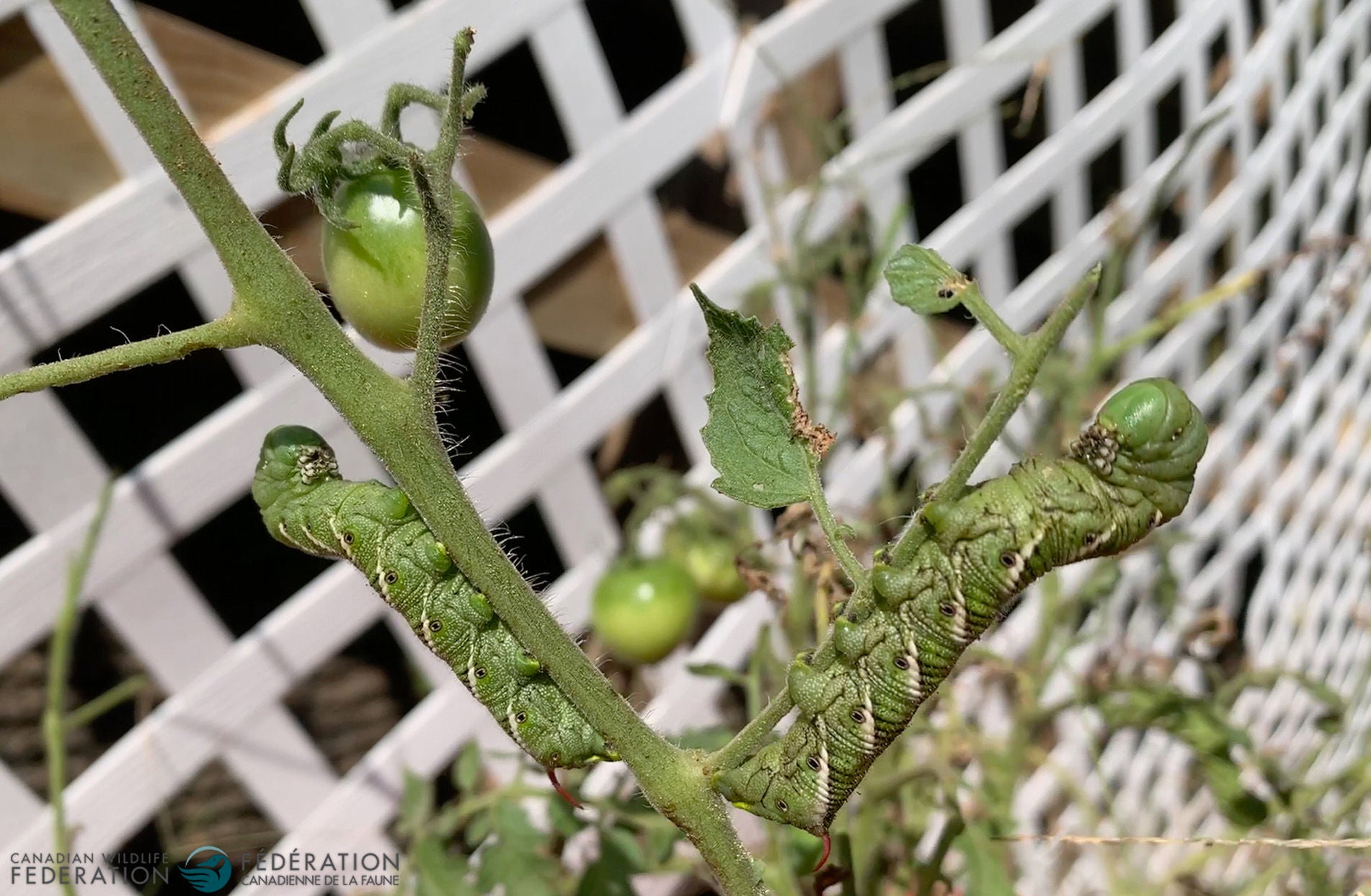 Eventually, the tomato hornworms caterpillar turns into the Five-spotted Hawk Moth and tobacco hornworms caterpillar turn into a Carolina Sphinx Moth. These moths have some resemblance hummingbird moth which is a beneficial pollinator but they are not the same.