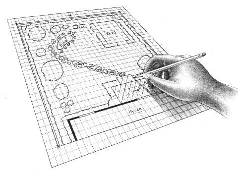 You have set up a plan of action and created a map of your present backyard to create an inventory of what you have. The next step is to draw up a rough site plan of what you want to add to - or eliminate from - your yard. Shift around cutouts of trees, bushes, bird houses, and so on until you're pleased with the arrangement. When your rough site plan has been worked out, you can draw up a final version.
