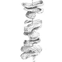 • A string of peanuts hung from a branch looks scrumptious to a blue jay.