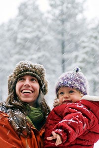 Deer (lying down): Form a rounded rectangle to be the deer’s body. You don’t always notice a deer’s legs because they can be hidden by grass or leaves on the ground. But if you want to make legs, form a small, narrow mound on each side of the body to be the hind legs. Pat a bit of snow on the body above the hind legs to make the thighs. Next, make a neck that is thick enough to support the head, which should be a rounded oval with a pointy muzzle. When making the ears, keep in mind that deer ears are relatively large flattened ovals with slightly pointed tips. If you are making a buck, you can use a couple of sticks with branching for antlers. The deer’s eyes can be made with small cones or the scales of a larger cone. Of course, children will come up with even more creative ways to bring the deer to life, so let their imaginations soar and see what they come up with.