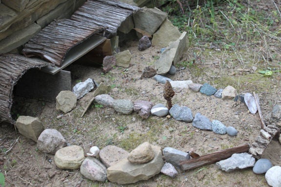 Building in the sand is a fun way to occupy your young friend while you work nearby in the garden.