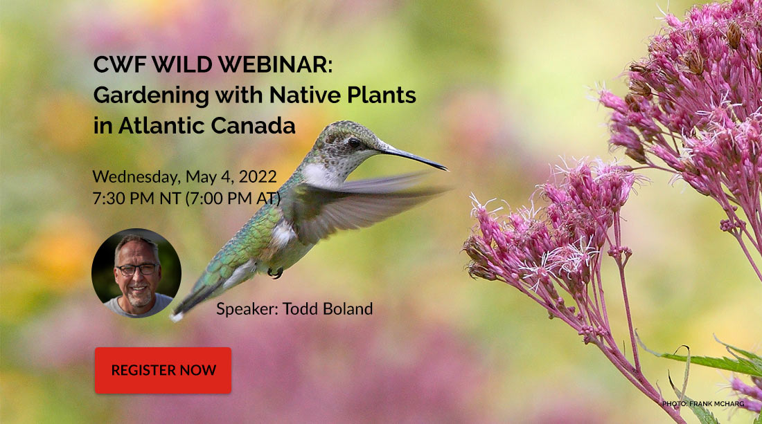 Join CWF Wednesday May 4 for a webinar on using native plants in an Atlantic garden. Special guest, Todd Boland, author and longtime horticulturalist, will introduce Atlantic Canadian gardeners to the attributes of using native plants in their home landscapes and how these plants can benefit pollinators and birds.