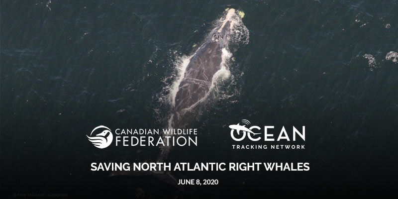 Join the Ocean Tracking Network (OTN) and the Canadian Wildlife Federation (CWF) on World Oceans Day for a talk on the North Atlantic right whale—one of the most endangered whales in the world—that relies on the plankton-rich waters of the Maritimes, and faces dire threats from ship strikes, fishing entanglements and climate-driven changes in food sources and habitat. Historically found throughout the Atlantic Ocean, today North Atlantic right whales overwinter and calve in the south between Georgia and Northern Florida, and move north to Canada to feed in the plankton-rich waters of the Bay of Fundy, off the Scotian Shelf, and in the Gulf of St. Lawrence in the summer. After centuries of whaling, populations of some whale species have rebounded, but entanglements and ship strikes remain a serious problem for the conservation of large baleen whales, including for North Atlantic right whales. Due to human-induced stressors as well as lower calving rates since 2010, experts predict that right whales could become extinct in as little as 20 years. Tune in to learn more from Canadian Wildlife Federation’s right whale expert Sean Brillant about how we can work together to ensure a future for this iconic and critically endangered species.