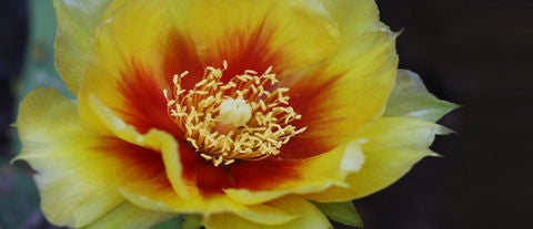 Plant Description: This low-spreading cactus has flat, rounded pads covered with spines. It has large yellow or yellow and red flowers, which tend to bloom midsummer.
