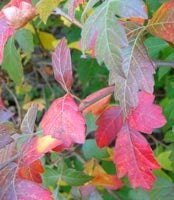 - Appearance: Low shrub of one to 1.8 metres tall with three leaflets that are aromatic when crushed between fingers. Similar leaf structure to poison ivy. Inconspicuous flowers appear earlier in spring than other sumacs. Small, roundish clusters of fuzzy red berries in mid to late summer. Stems and trunks are hidden under dense foliage that gradually spreads sideways.