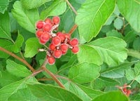 - Appearance: Similar to R. glabra but smaller; reaches 1.5 to 2.5 metres. Leaves have five to 11 leaflets that are smooth along the margins (no serrations). The leaf stalk is 10 to 20 centimetres long and looks like it has wings with a narrow band of leaf-like material growing alongside the stem in between leaflets. Twigs can be both smooth and hairy. Red berries. Slow growing. Click here for more information and images.