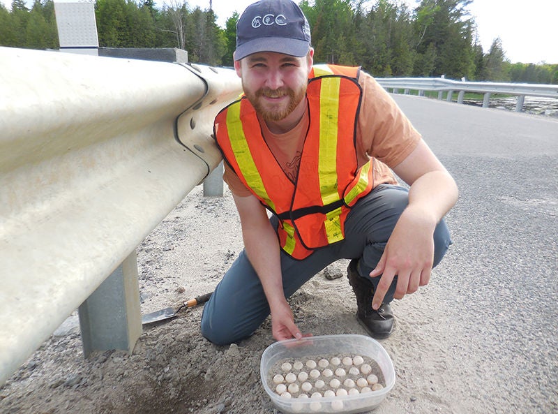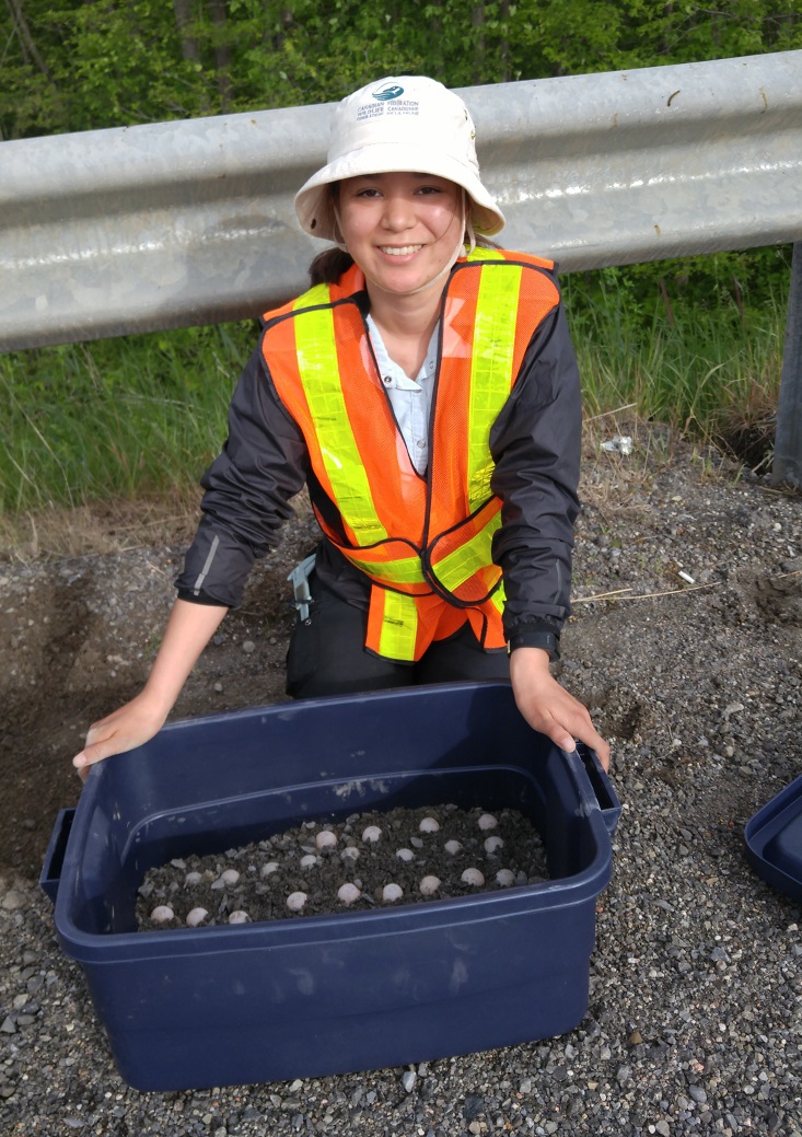 Une partie de notre travail à Ottawa vise à identifier les endroits importants de nidification pour les tortues. Il est essentiel de protéger les nids de tortues pour deux raisons. D’abord, les taux de prédation sur les nids peuvent être extrêmement élevés dans certaines régions. Il s’avère donc très bénéfique pour les populations de localiser ces nids et de les protéger en mettant des cages autour ou en creusant et en couvant les œufs. Les ratons laveurs et autres prédateurs creusent les nids et mangent plusieurs des œufs. Dans certaines régions, les ratons laveurs prennent presque tous les œufs, ce qui menace les populations de tortues. En mettant des cages autour des nids, nous pouvons éloigner les prédateurs et protéger les œufs jusqu’à l’éclosion. Secondement, en repérant le nid de tortues menacées ou en voie de disparition, nous engendrons l’établissement de mesures de protection légale dans la région à proximité du nid.