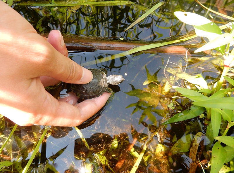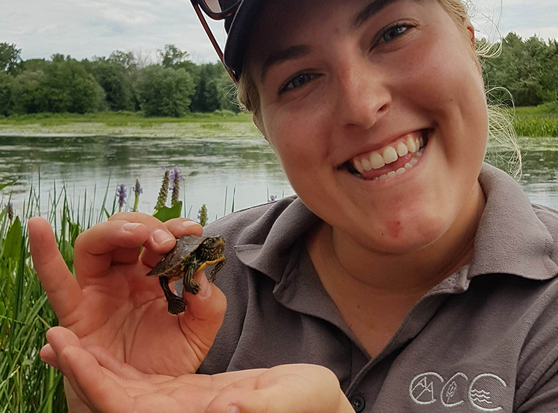 - Protégeant des habitats de zones humides : Nous faisons des inventaires de tortues mouchetées en voie de disparition afin de déceler de nouveaux endroits où elles se trouvent.