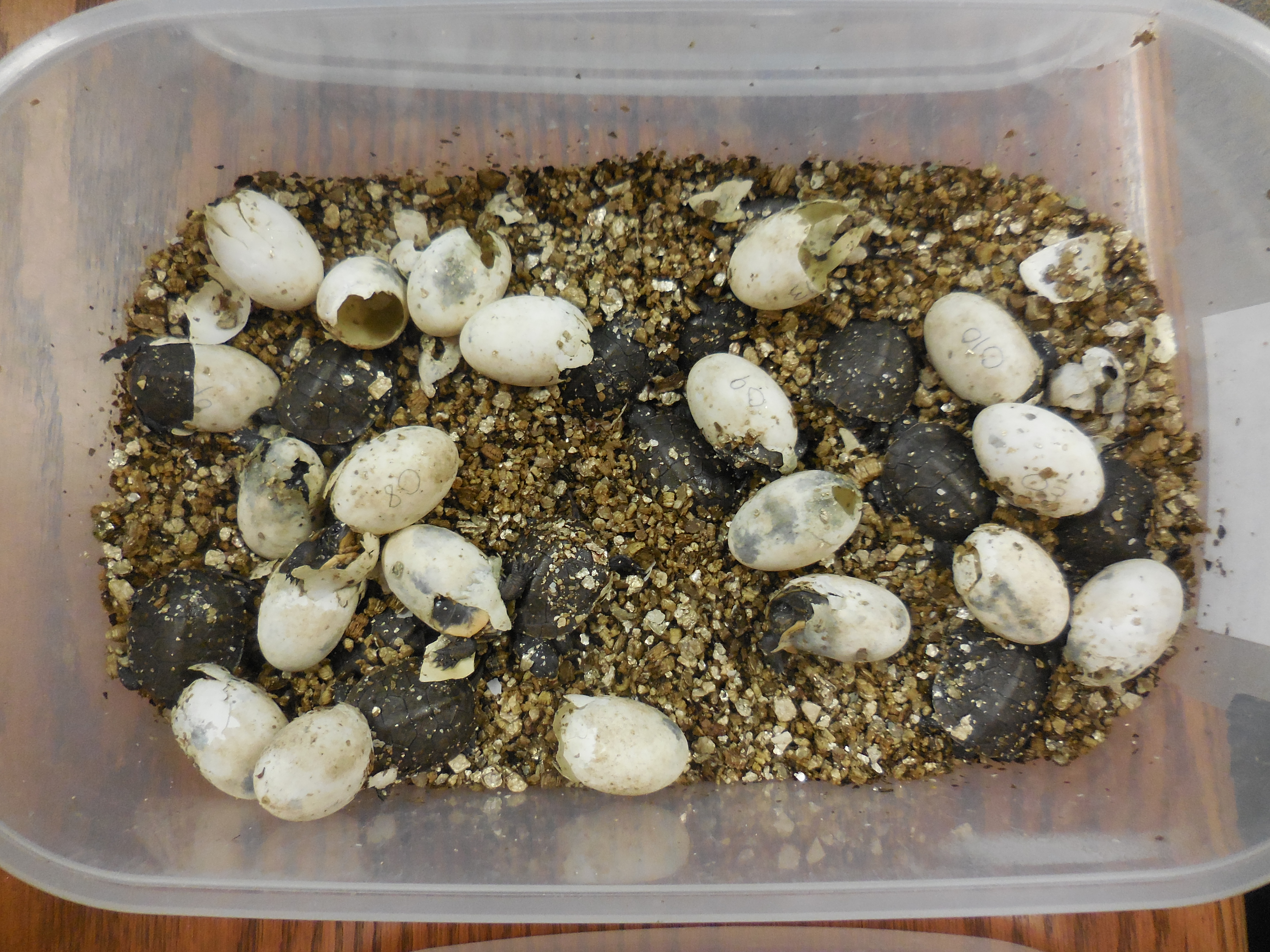 - Chaque été, nous collectons et faisons incuber des œufs de tortues dans le but d’accroître les populations sauvages.
