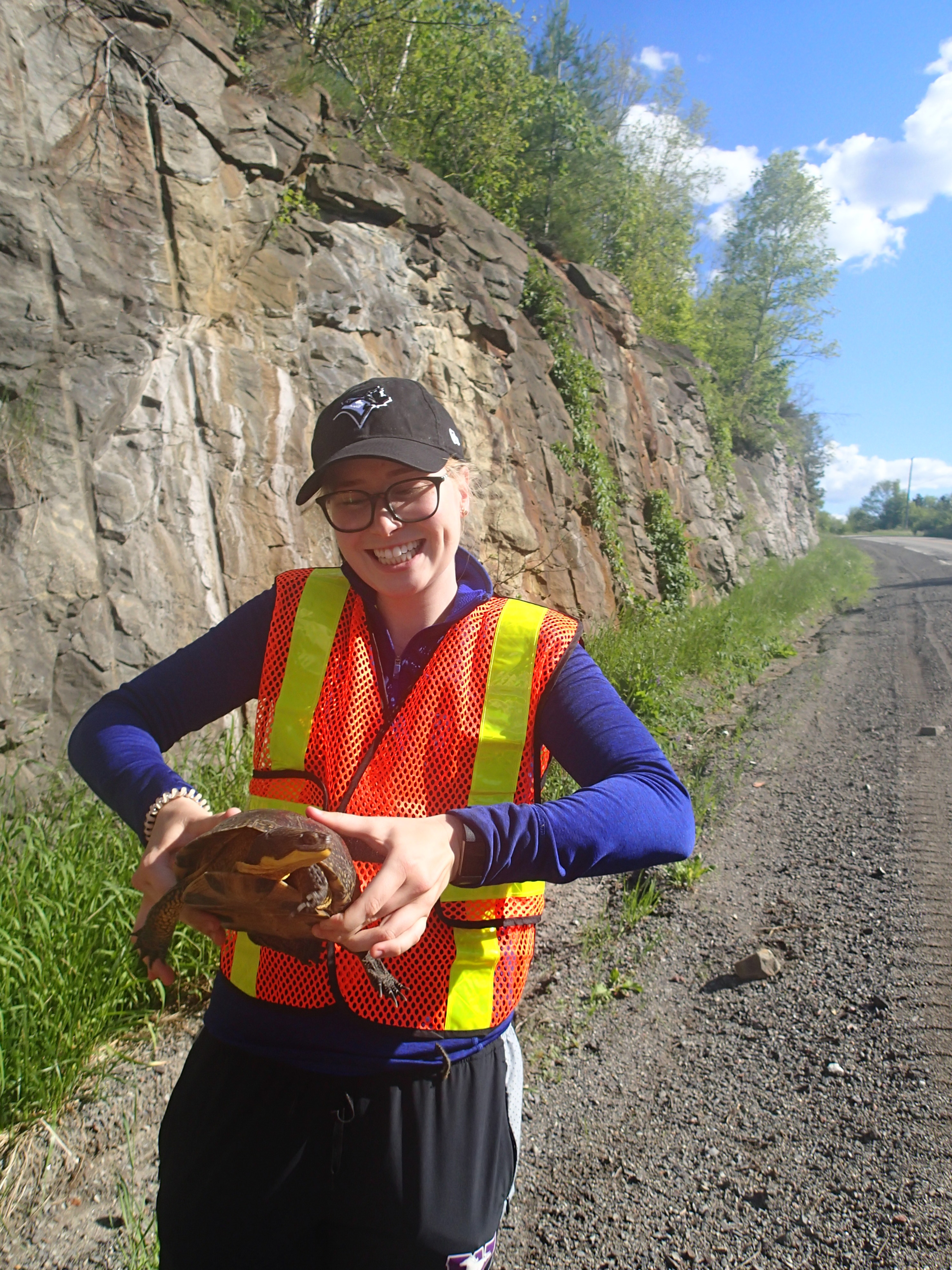 La chaussée présente une énorme menace pour les tortues, raison pour laquelle nous menons des enquêtes pour trouver les endroits où il y a de hauts taux de collisions avec les tortues. Bien que nous dépendions tous des routes pour nous déplacer, nous pouvons y améliorer la sécurité pour les animaux sauvages. Les clôtures et les structures de passage sous la chaussée peuvent permettre aux tortues et aux animaux de se rendre où ils veulent aller. À la suite de nos enquêtes, des panneaux pour signaler une traverse de tortues ont été posés à quatre endroits où le taux de mortalité était élevé. Des clôtures pour protéger la faune ont été posées à quatre des pires endroits de mortalité sur la route à la suite de nos travaux.