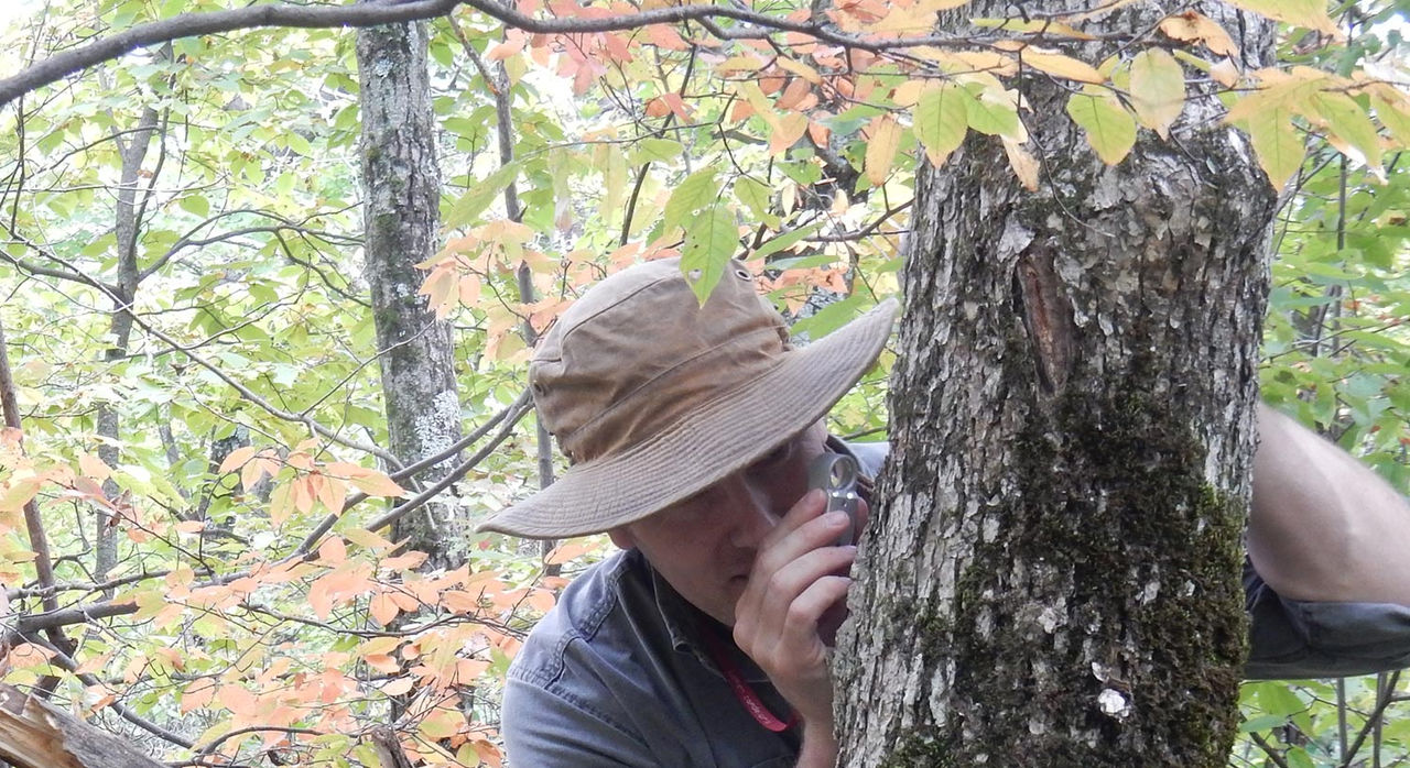 James Pagé (préposé aux espèces en péril et au programme de la biodiversité de la Fédération canadienne de la faune) étudie le parc de la Gatineau depuis le début de l'année 2016. « Je pense que ce secteur présente un habitat semblable à celui des régions où ce lichen a été trouvé en Ontario », explique James Pagé, qui a mis sur pied une équipe de recherche incluant Nicolas Conroy, stagiaire, Jessica Allen, chercheuse au Jardin botanique de New York, et Troy McMullin, Ph. D., lichenologue au Musée canadien de la nature. Jessica Allen et Troy McMullin ont identifié des dizaines de lichens au cours de la journée.