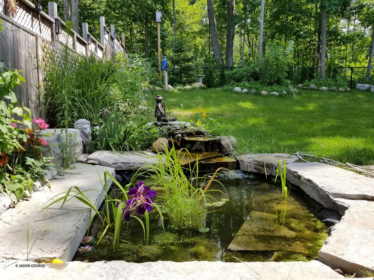 À faire : Ajoutez des rochers! L’ajout de petits tas de pierres à votre étang procure aux insectes volants comme les libellules des lieux où se reposer. Vous aurez peut-être la surprise d’observer une grenouille heureuse profitant du soleil sur les rochers!