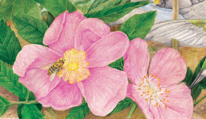 Voici un jardin où s'affairent des pollinisateurs! Cliquez sur l'image interactive pour y regarder de près.