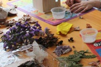 - des feuilles séchées et aplaties (nous vous suggérons les fougères, dont vous pourrez diviser les feuilles);