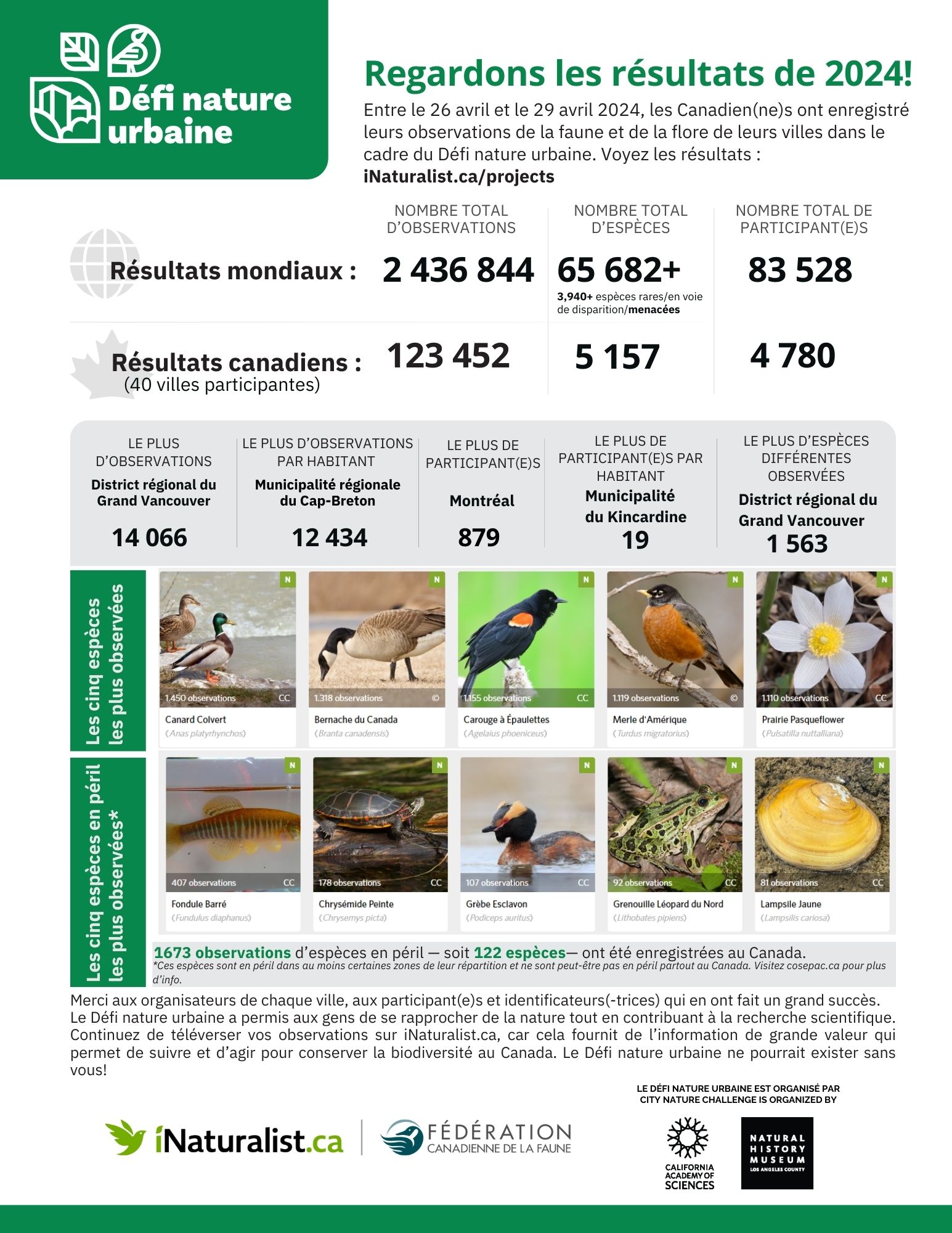 Résultats du Grand bioblitz canadien 2024