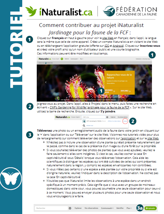 Comment contribuer au projet iNaturalist Jardinage pour la faune de la FCF