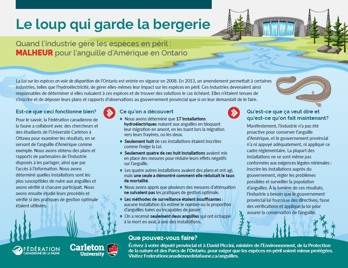 Quand l’industrie gère les espèces en péril : MALHEUR pour l’anguille d’Amérique en Ontario